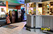 Walter Kern und Ex-Fußballprofi Uli Sude (Borussia Mönchengladbach) vor einem Sport-Unterhaltungsgerät.